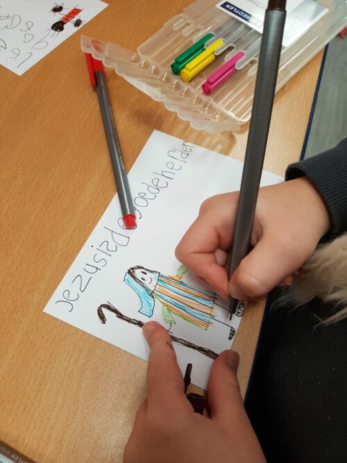 Vooraf aan de kindernevendienst zingen we altijd een kinderlied van de maand in de kerk tijdens het kindermoment. Op de kindernevendienst bidden we met elkaar, lezen we uit de Bijbel en knutselen we een bijpassend werkje. Ook houden wij onze eigen collecte voor onze 3 sponsorkinderen van Red een Kind. En natuurlijk kletsen we gezellig vooraf en tijdens het werkje met elkaar.